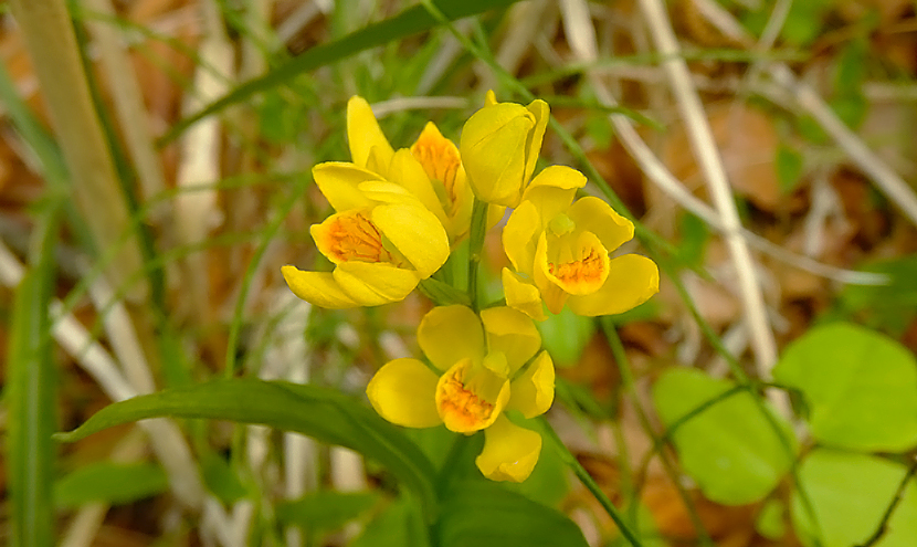 絶滅危惧種Ⅱ類(VU)に指定されている希少な野生ラン。落葉樹林の林縁など明るい半日陰に生育します。コナラなどの樹木の根に付く特定の菌根菌と共生関係を持ち、菌根菌がなければ生育することができません。全国的な里山林の荒廃や樹林の減少に伴って、生育地は減少しています。